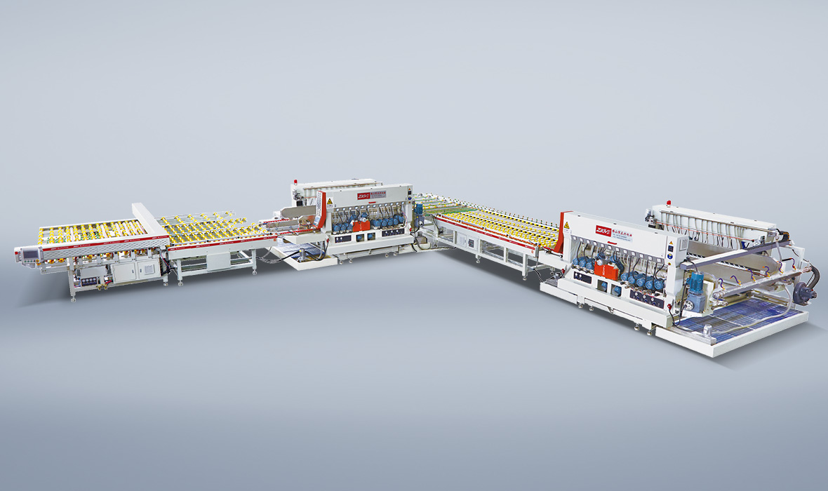 智能高速玻璃磨邊機生產線,是矩形原片玻璃磨邊加工的專業設備; 適用于建筑、幕墻、家具、家電玻璃的加工。